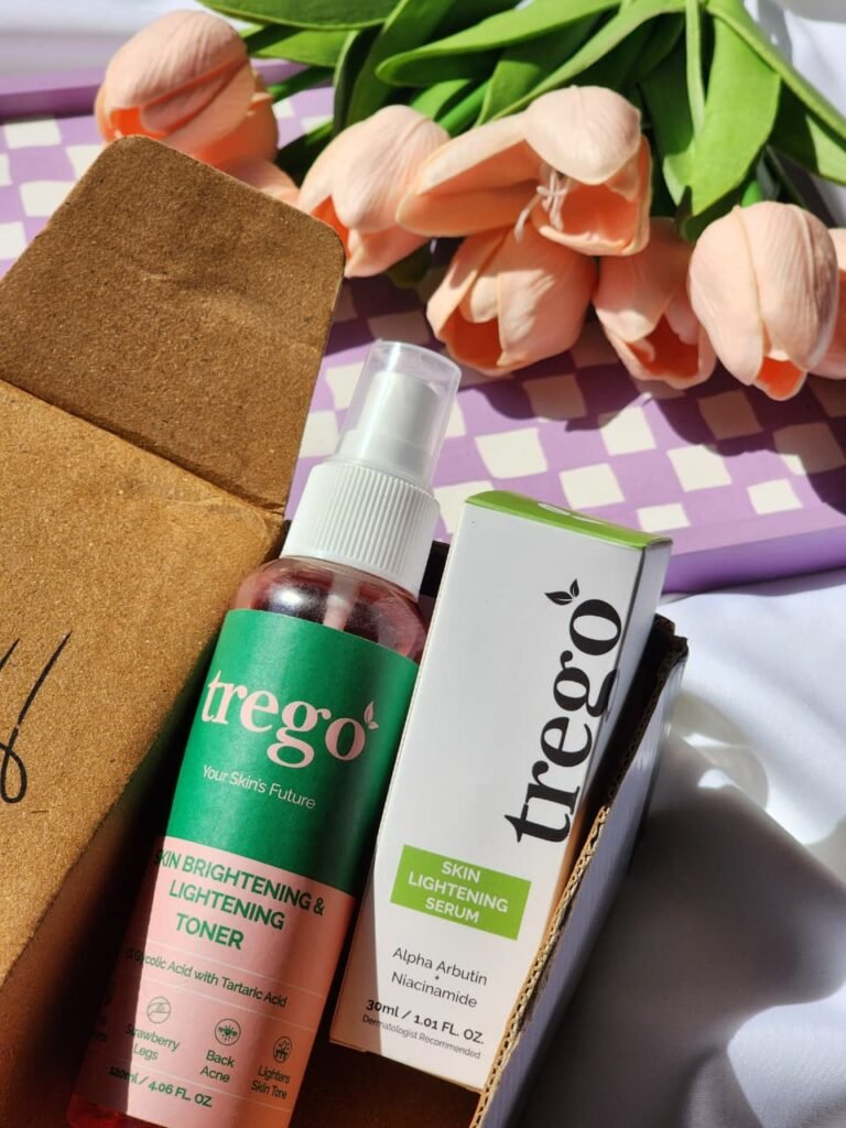 During Ramadan, I purchased two skincare products from TREGO: the Skin Lightening Serum (5% Niacinamide + Alpha Arbutin) and the Skin Brightening & Lightening Toner (5% Glycolic Acid + Tartaric Acid). After finishing the serum and using the toner in different ways, I’m sharing my honest and detailed review so that anyone considering these products can make an informed decision.